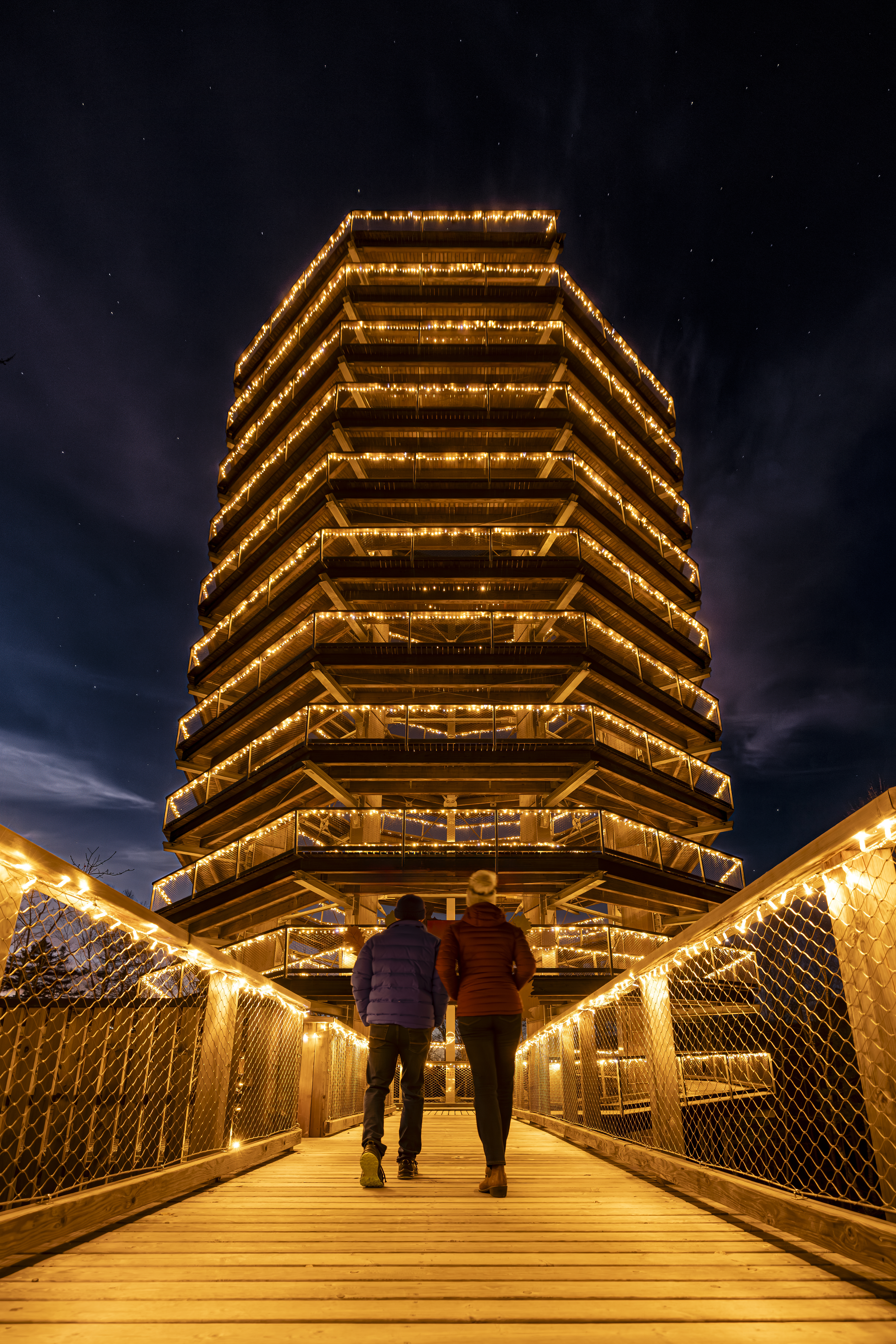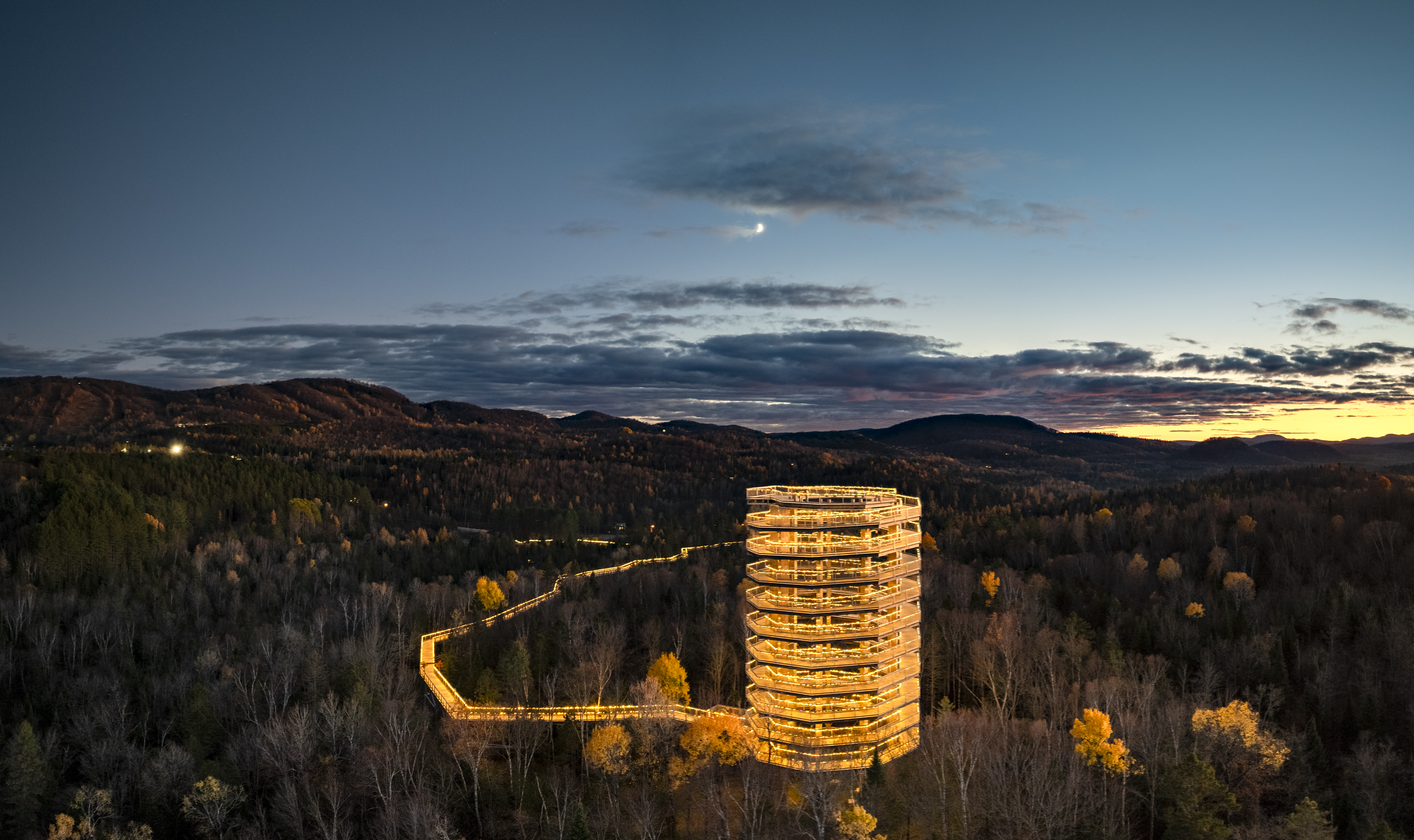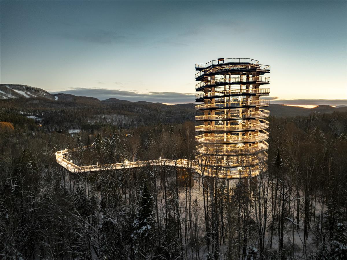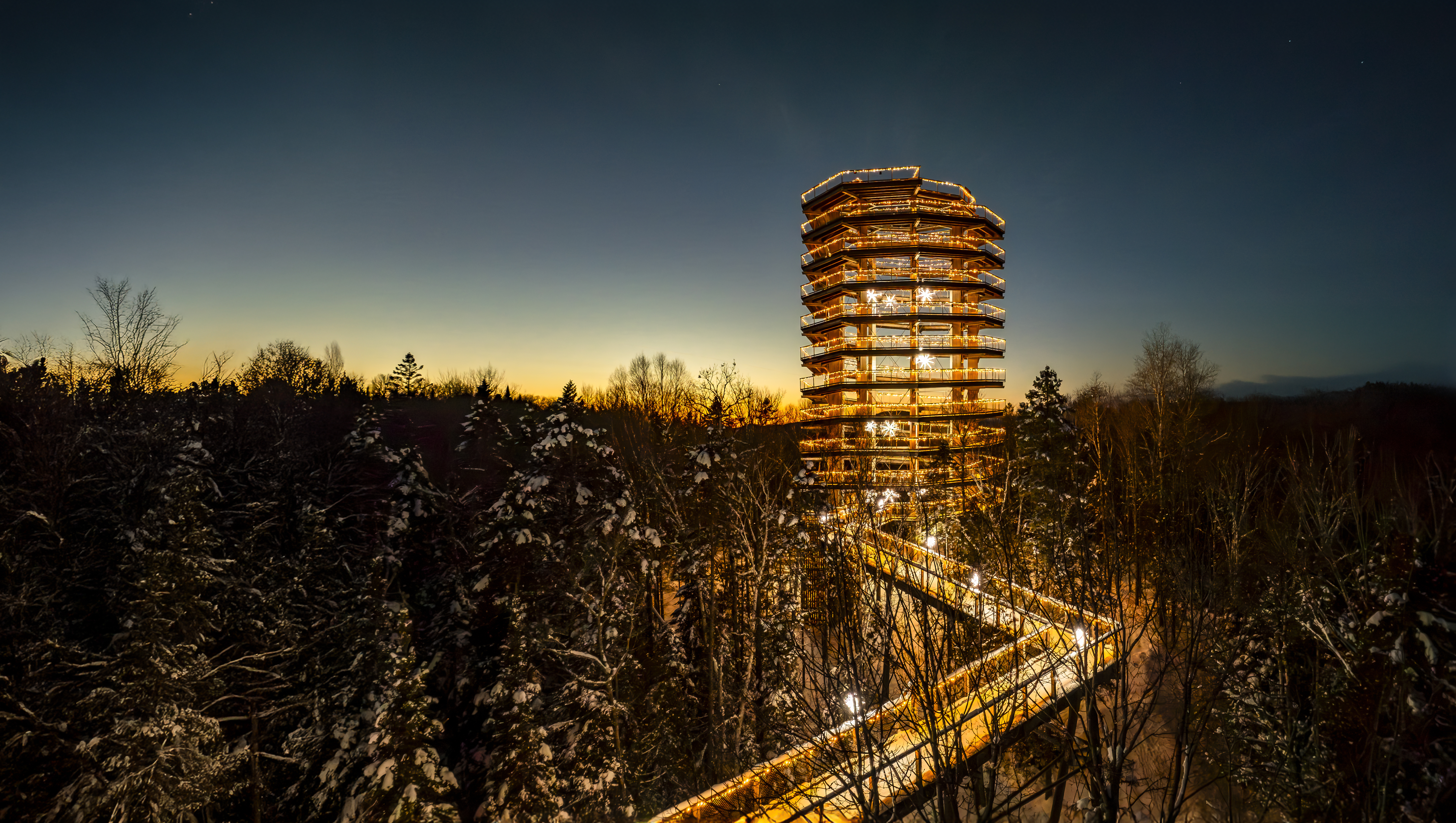 Winter transforms the Sentier des cimes into a gentle, luminous interlude, where the forest reveals all its charm. From the tower, winter landscapes stretch as far as the eye can see, offering a memorable experience.