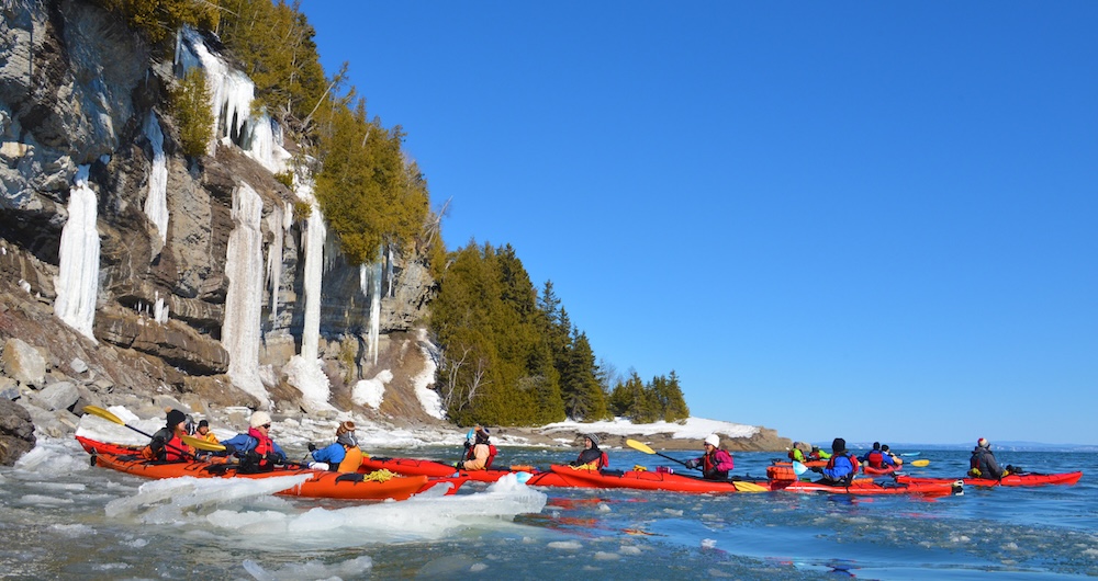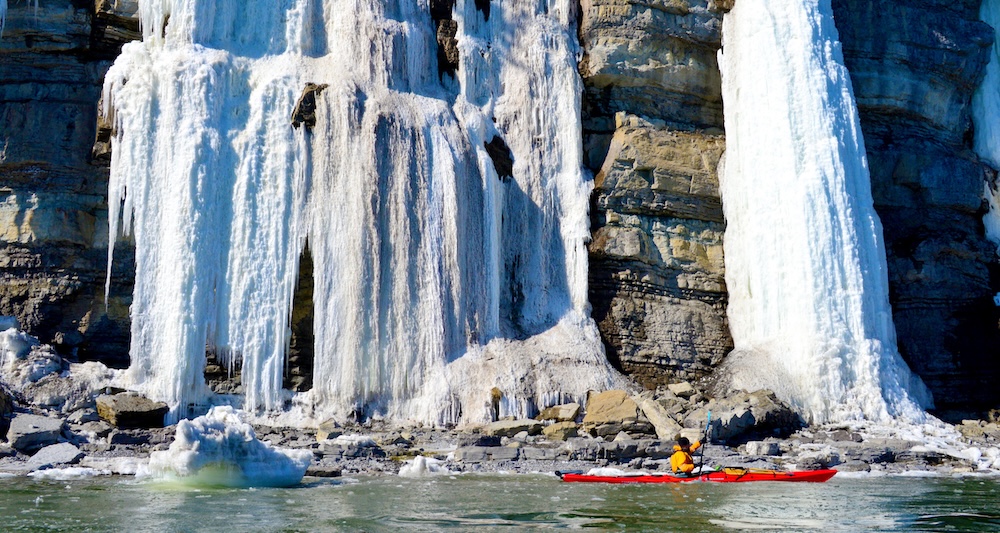 En formule demie-journée, pagayez au pied du Mont des Éboulements lors d’une sortie en kayak de mer guidée, au départ de la plage de Saint-Irénée. Explorez le Ruisseau Jureux, l’Anse au Sac et le Cap aux Oies. Lors d'une journée découverte en kayak de mer, explorez les sections majestueuses de la Côte Charlevoisienne avec nos deux parcours d’environ 16 km, soigneusement planifiées selon les marées du Saint-Laurent. Accessibles aux novices et sportifs.Kayak de mer hivernal entre les glaces